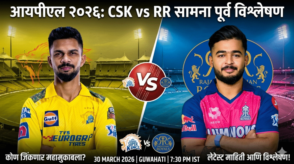आयपीएलचे वेड पुन्हा एकदा सर्वांच्या डोक्यावर चढले आहे! २०२६ च्या सीझनची सुरुवात धमाकेदार झाली असून, आता सर्वांच्या नजरा खिळल्या आहेत त्या म्हणजे चेन्नई सुपर किंग्स (CSK) आणि राजस्थान रॉयल्स (RR) यांच्यातील हाय-व्होल्टेज सामन्यावर. एका बाजूला पाचवेळा चॅम्पियन राहिलेला चेन्नईचा संघ आहे, तर दुसऱ्या बाजूला पहिल्या आयपीएलचा मानकरी राजस्थान रॉयल्स.