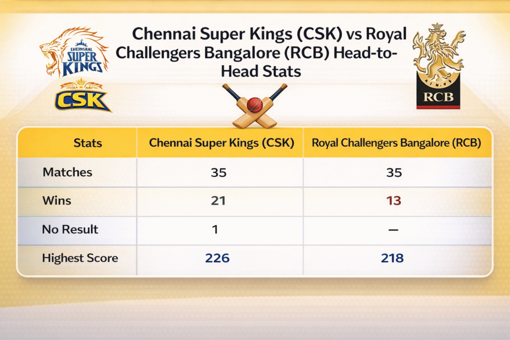 हेड टू हेड आकडेवारी (RCB vs CSK Head-to-Head)